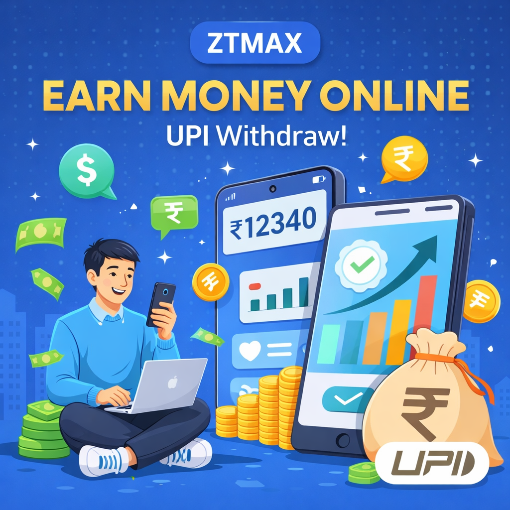 You can earn money through the ZTMAX website by completing small or large tasks. The platform does not give money directly without work; instead, users receive payments in exchange for completing specific activities. For example, you can earn money by watching ads, completing simple online tasks, or working on projects. The more tasks you complete, the more you can earn. ZTMAX is completely legal, and all payments are based on the work done by the user. Once you earn money, you can transfer your amount directly to your UPI or bank account easily and securely.